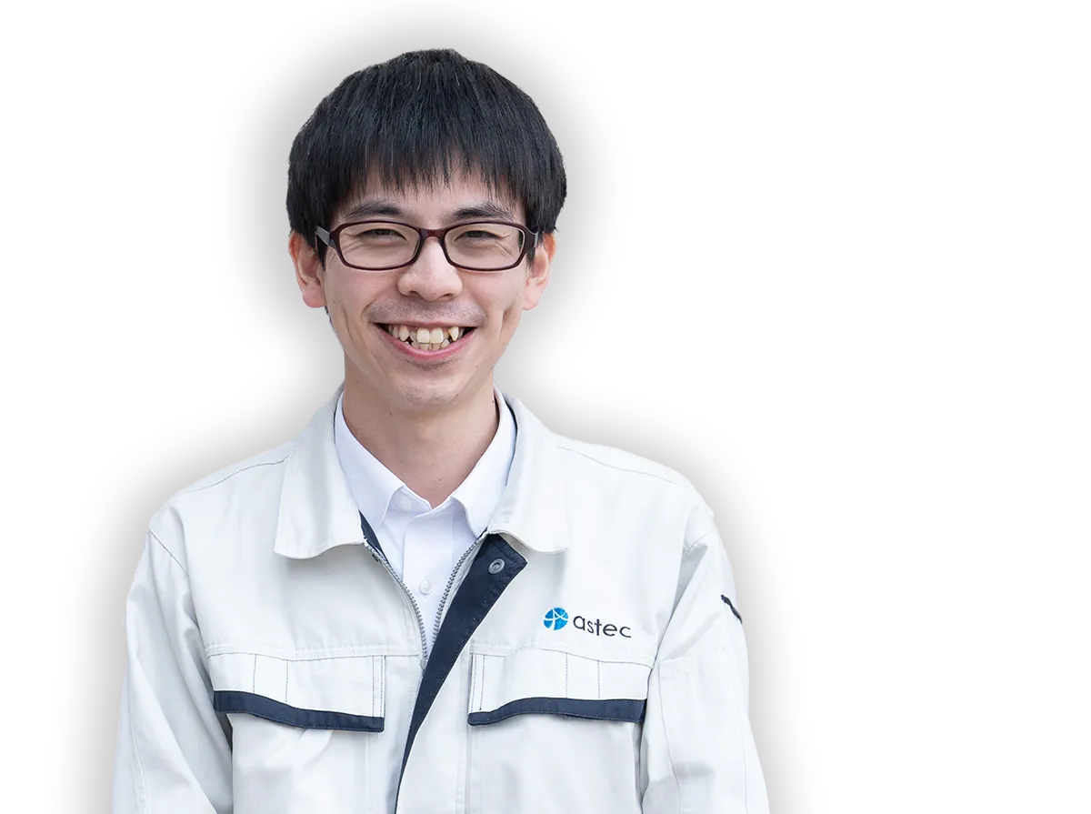 オーダーメイド製品では個別対応が求められる一方で、PLC以外の制御技術を深めたいと考え、地元である福岡で働ける企業を探していました。また、より多くの人に安定した品質の製品を届ける量産設計にも関心があり、これまでの制御技術を活かしながら新たな挑戦ができるアステックへの転職を決意しました。